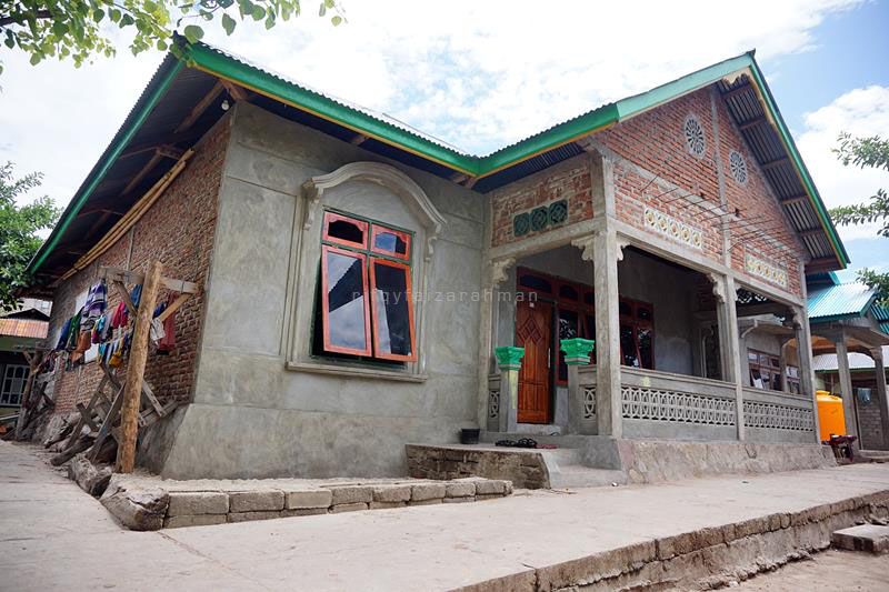 Rumah-rumah di pulau ini sudah mendapat sentuhan modern, meski hanya beralas semen. Seperti rumah besar yang dihuni satu keturunan Suku Uma Tukang ini, satu di antara lima suku keturunan yang ada Pulau Buaya. Leluhur Arman, yang menemani saya ke pulau ini. Namun, hal-hal unik tetap terjaga. Salah satunya adalah tersedianya petak khusus beralas pasir alami di luar rumah. Warga lebih sering memilih tidur di atas pasir daripada di dalam rumah karena gerah.