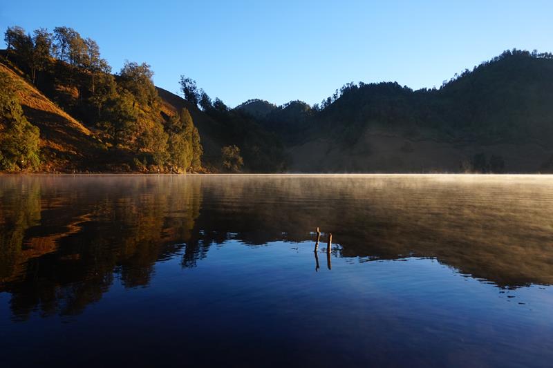 Pada waktu yang pas, sang rawi akan menampakkan diri persis di antara dua bukit. Disusul kabut-kabut tipis yang melayang di permukaan danau. Dinginnya malam berganti kehangatan pagi.