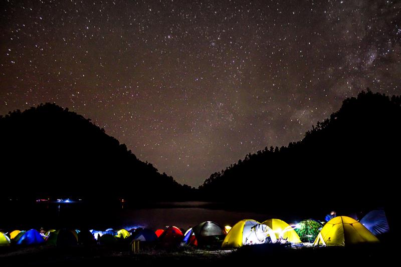 Pertalian dengan danau di ketinggian sekitar 2.400 meter di atas permukaan laut (mdpl), tidak hanya cerita absurd tentang pendakian kami yang payah saat itu. Pada kesempatan mendaki Semeru beberapa tahun setelahnya, saya pernah mengalami suatu malam yang mengagumkan. Bukan di puncak atau pun Kalimati. Di Ranu Kumbolo-lah, saya dan sebagian pendaki menjadi saksi kebesaran Sang Pencipta.